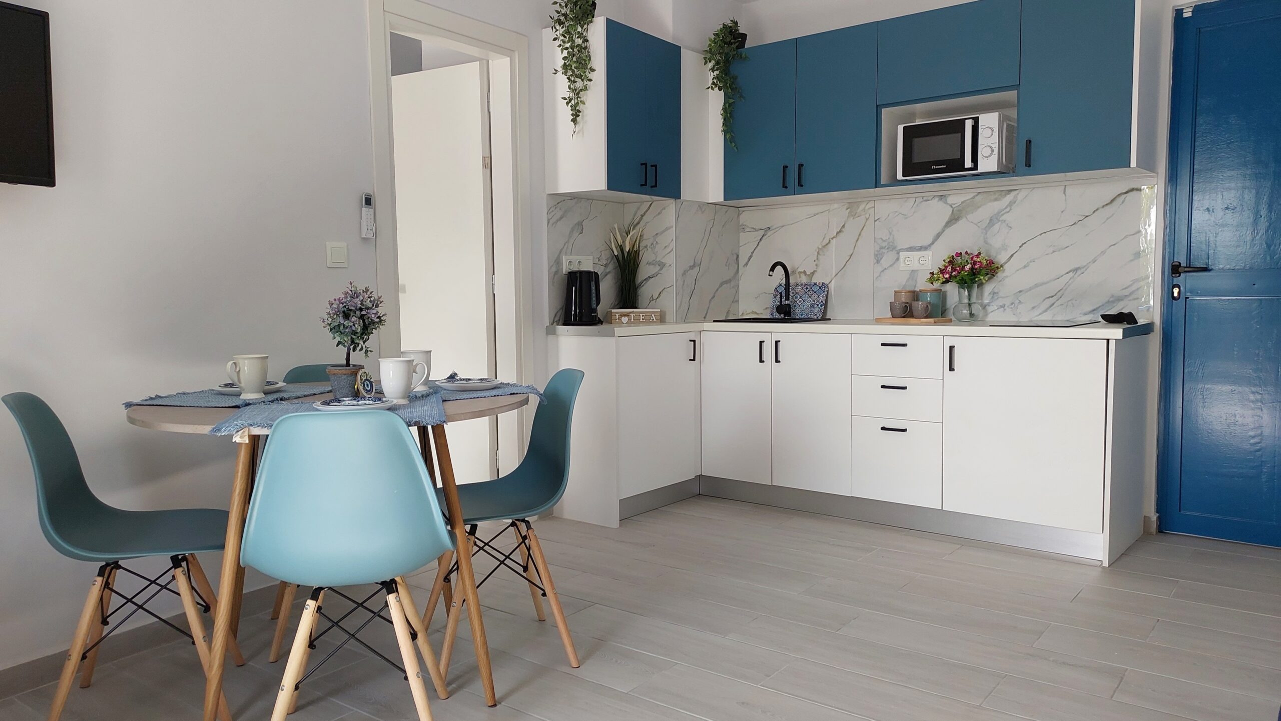 Zapraszamy do Blue Apartments w Agios Andreas. Nasza malutka wioska znajduje się na Peloponezie w regionie Mesenia.
